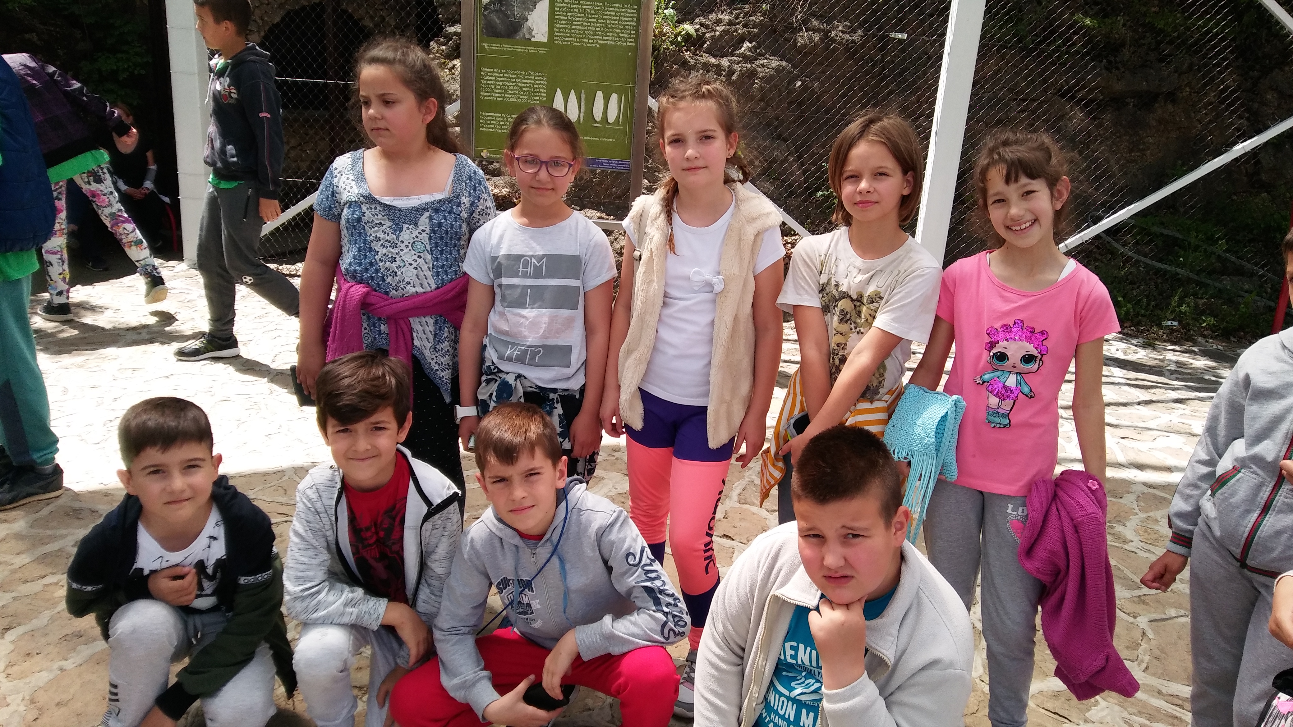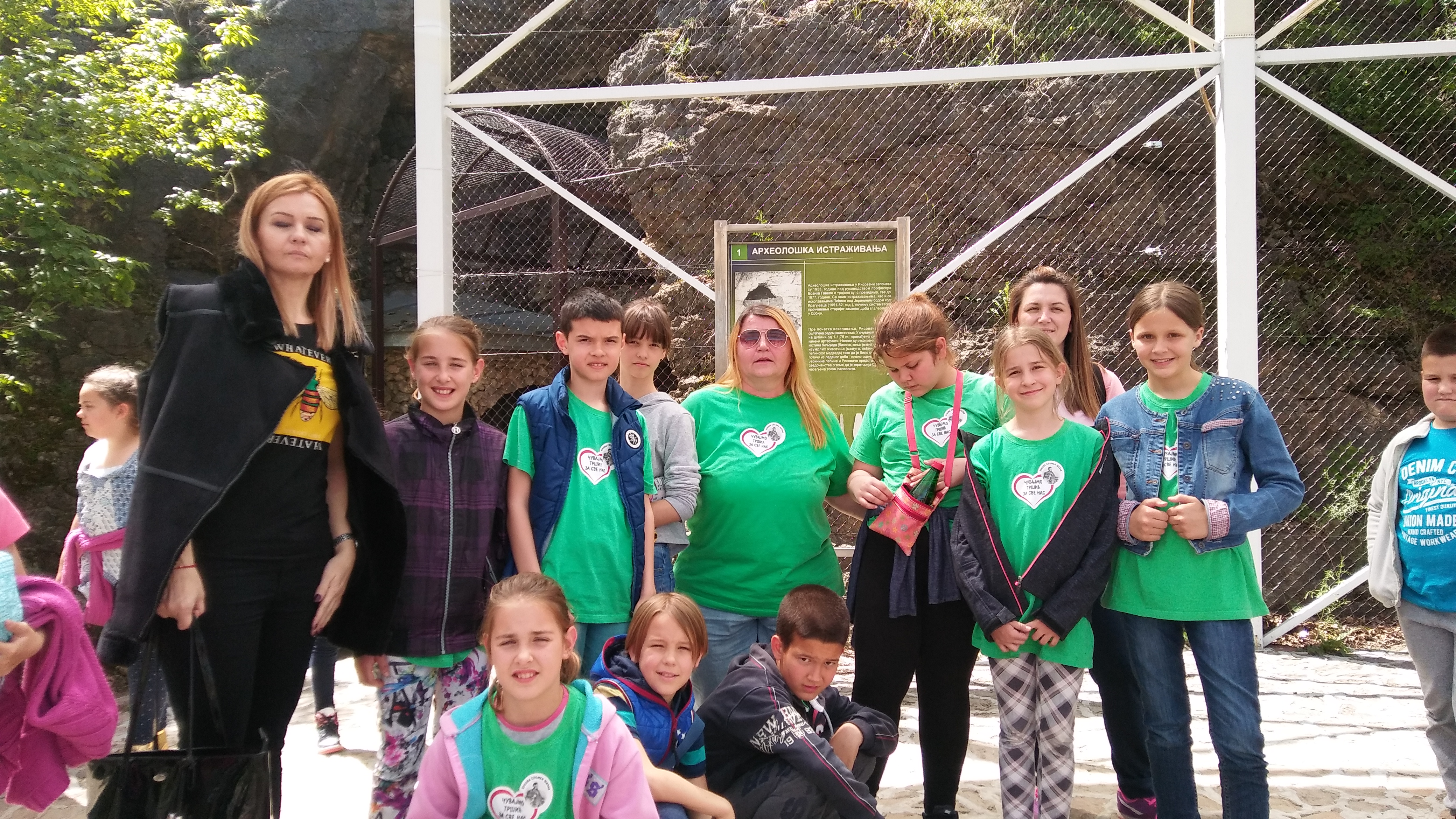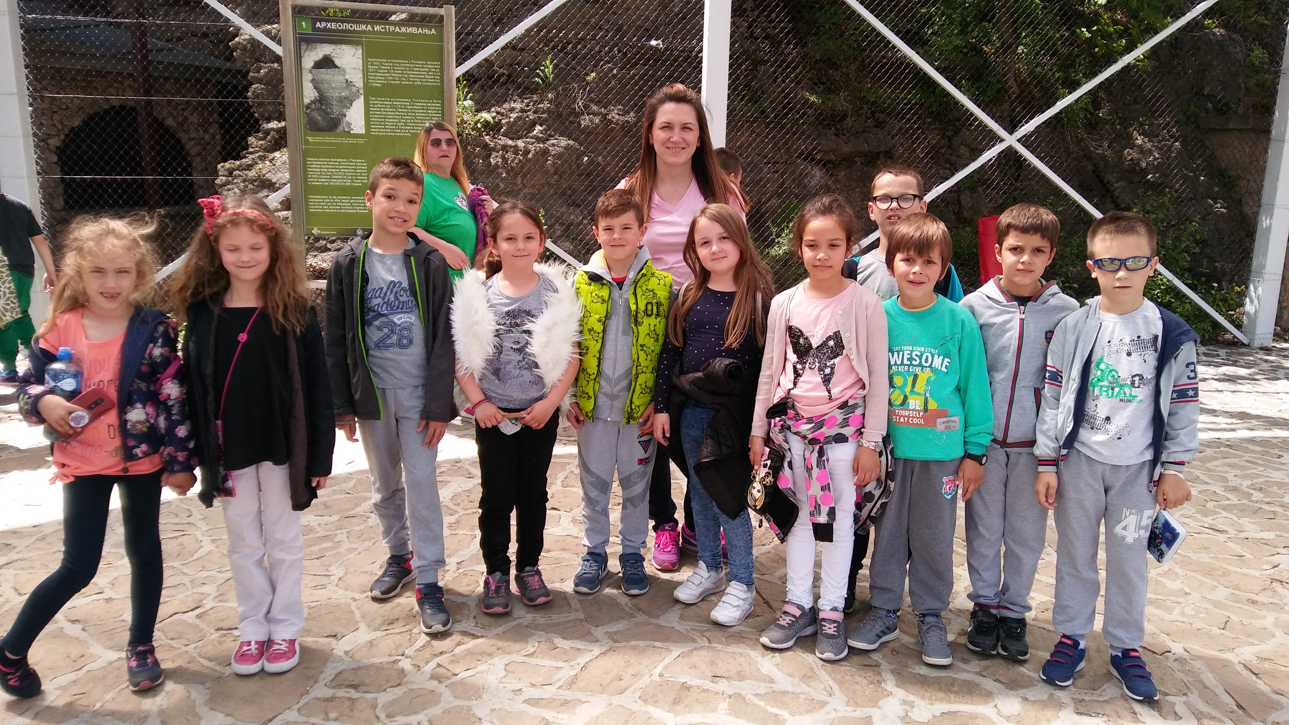 Тако, ведри, стижемо у пећину Рисовача. Пећина се налази на самом улазу у Аранђеловац и уређена је по свим принципима савремене презентације. Она представља станиште човека из леденог доба и једно је од најпознатјих налазишта палеолита у Европи. У њој су откривени и фосили пећинског медведа, мамута, рунастог носорога, бизона, пећинског лава, леопарда, пећинске хијене,… И све то смо могли видети у облику реплика које су биле застрашујуће реалистичне.