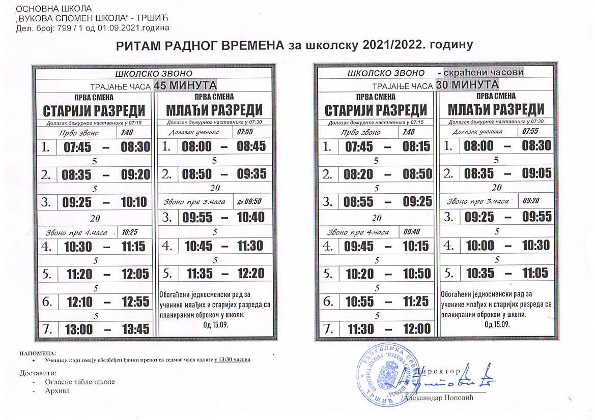 • Распоред звоњења